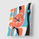 Retro Colorful Abstract Pattern with Monogram Square Wall Clock