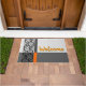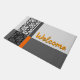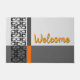 Mid Century Modern shapes on a colour blocked background in oranges and greys