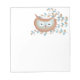 Note pad with owl originally painted in acrylic on paper looks hand painted right on the pages for that homemade feel. Retro colours aqua and brown.