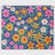 Retro Colourful Boho Flowers on Navy Blue Wrapping Paper