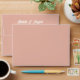 A retro modern hand written bright colourful wedding envelope. Which features bold vintage bride and groom's names in white creamy colour. And personalized return address . On peach colour background. Which suits the whole wedding suite.