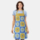 Retro Colourful Flowers Blue Yellow Personalized Apron