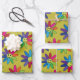 Retro colourful flowers with happy faces pattern wrapping paper sheet