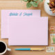 A retro modern bright vivid blue and pink wedding envelope. Which features bold whimsical blue bride and groom's names in bright blush pink background colour. And personalized return address . Which suits the whole wedding suite.