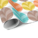 Inspired by beautiful retro colours, this polka dot pattern has colours in it like orange, mustard yellow, brown, turquoise blue and white.