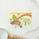 Say thank you for your gifts in a bold colourful way and with a cool retro vibe! On the front, a watercolor wash backdrop is overlaid with an arty rainbow and decorative florals pattern from the top right hand side and curving around the text. Thank You is in a set informal typeface in soft pastel colours. Easily personalise with your message on the back, simply replace the sample text. You can also change the font styles and colour on the back as well as the lemon background colour via the click to customise further option..