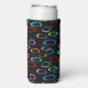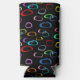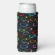 Retro colourful shapes pattern on black seltzer can cooler