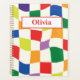 This is custom personalized notebook featuring colourful groovy warped chequerboard pattern in rainbow colours like red, green,pink,purple,blue and orange. It's great looking notebook for women who love retro checks in 70s style