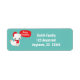 Whimsical white fox with retro red scarf, santa hat and Merry Christmas text bubble on aqua background. Customize with your personal details in modern white font