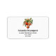 Address labels with a vintage style illustration. 3 red Christmas baubles surrounded by green holly and berries. Stylish retro design.