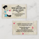 Retro style baker business card; this woman, girl, female baker wears a frilly apron, pearls, earring and has a huge flowered cupcake to show off. For baking, pastry chef businesses or family style cafes and restaurants, modern design with old fashioned appeal. Set includes business cards, marketing promotional postcard and letterhead that can used for fliers, stationery, or menus.