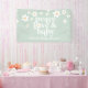 Paix, amour et bébé. Bannière de baby shower marguerite d'inspiration rétro avec marguerites de style 70's et polices et couleurs boho.