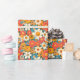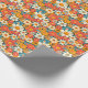 This retro daisy floral wrapping paper features bold orange, teal, yellow, and coral flowers inspired by 70s groovy patterns. Perfect for birthdays, bridal showers, Mother’s Day, spring gifts, or anyone who loves colorful floral style.