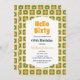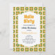 Green and yellow retro groovy daisy flower in chequered box pattern Birthday Invitation.
