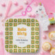 Green and yellow retro groovy daisy flower in chequered box pattern Birthday paper plate.