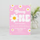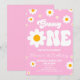 This is a Pink Retro Daisy Flower Groovy One 1st Birthday Party Invitation.