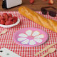 Retro Daisy Flower Single in Pink Gradient Paper Plate