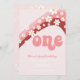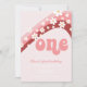 Retro inspired first birthday invitation with 70's style daisies and boho fonts and colours.