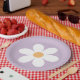Groovy One Retro Sunshine Rainbow Daisy inspired first birthday party plates.