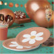 Groovy One Retro Sunshine Rainbow Daisy inspired first birthday party plates.