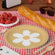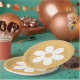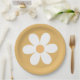 Groovy One Retro Sunshine Rainbow Daisy inspired first birthday party plates.