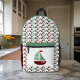 Retro Dark Red and Sage Sailboat Anchors Monogram Printed Backpack