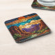 Retro desert scene Sedona mountains stainglass art Coaster