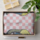 This cool, retro 50s diner sign artwork can be easily personalized with your own name. The background is a slightly-distressed pink-and-white chequered pattern, and the 1950s-style sign on top says DINER and OPEN in neon with space for your first or last name at the top.