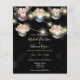 stylish retro disco balls boho floral pampas grass string lights black background wedding invitation