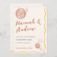 Celebrate your love with a touch of retro charm ✨ This fun and stylish wedding save the date card features a warm neutral background accented with playful disco-inspired line art, musical details, and soft wavy borders. The hand-lettered script typography adds a romantic, personal feel, perfectly balanced with clean, modern text for your event details.