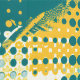 This artwork showcases a vibrant and energetic pattern of dots and dynamic brushstrokes, creating a striking visual effect. The composition features a bold colour palette of teal, yellow, and white, with the dots varying in size and density to form waves and gradients across the canvas. The interplay between the smooth, rounded dots and the rough, sweeping brushstrokes adds a sense of movement and rhythm to the piece, evoking a retro, pop-art inspired aesthetic. The design is both playful and bold, with a sense of modern abstraction.