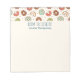 A personalized notepad with a cute pattern featuring doughnuts tumbling all around. Pink, green, brown and cream colours really give this design a cool retro feel.