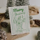 If you are looking for a simple minimalist beautiful and easy editable non photo Christmas card. This one is perfect for you. And as you see the design features a green hand made and drawn Christmas Santa Claus with a champagne glass and bottle, With whimsical green hand written typography of MERRY CHRISTMAS. All on light watercolor green stripes. And your family name and year under it. And In the back you got a a customizable Christmas greeting paragraph and a bow.