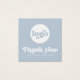 Square business thank you card featuring the text "Thank you" in a retro style font. White (or custom colour) text on a dusty blue background. Upload your logo on the front and add custom text on the back. You can change colours, move and resize elements with the design tool.