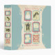 Super cute recipe binder, recipe organizer, personal cookbook or keepsake recipe collection binder with retro style breakfast and cooking icons: eggs, milk, asparagus, herbs, cheese and bacon with decorative background in retro colour scheme.