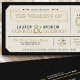Retro Elegant Black & Gold Vintage Ticket Wedding Invitation