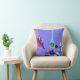 This Retro Evening at Home Throw Pillow looks like a scene out of a 1960's romantic comedy. The minimalist design features an attractive cartoon couple in the living room of a mid century modern house. The room prominently features a purple and blue stone wall and a matching purple and blue striped rug. Against the wall, there is a turquoise, cone shaped fireplace with a roaring fire. In the corner, the suave man of the house is lounging in a red egg chair. He is wearing a blue suit with a blue tie. In one hand, he is holding a martini glass. No wonder he's so relaxed! Hanging from the ceiling, there is a yellow, Sputnik light fixture. A woman with an hourglass figure is sitting on the rug. She is wearing a vibrant, blue dress and not a hair is out of place in her flippy blonde "do". Beside her, on the floor, there is a blue and black portable record player. Several vinyl record albums are scattered near the beautiful deejay. Go ahead and sing along. You know you want to!