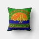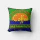 Un coussin reto art de lire Excel avec Excelorator, un Excel-o-rator Café nouveau, design de caisse de café vintage qui garantit Qualité et Satisfaction à chaque fois, en bleu et vert riche avec des lettres jaunes et oranges exaltantes.