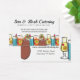 Retro exotic or tropical drinks business cards with fruit slices, fruit on sticks and an umbrella in a coconut for good measure. Fun, colourful drinks for party planners, caterer or catering company or contract bartenders.
