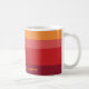 This awesome fall-toned coffee mug features four colour blocks across the background with the text "coffee" in the foreground. The colours represent autumn with golden yellow, melon, burnt orange, and chocolate brown. The word "coffee" is offset with multiple colours as well.