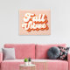 This retro-inspired fall design prominently features the phrase "Fall Vibes" in a bold, 3D-style font that immediately grabs attention. The text is layered with warm autumn colours, including rich oranges, deep reds, and soft creams, creating a sense of depth and dimension that makes the words pop off the background. The vintage-style typography with its soft, rounded edges gives the design a nostalgic feel, reminiscent of classic 1970s aesthetics. The playful shadows and colour contrasts add to the design's dynamic, eye-catching appeal.