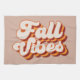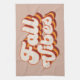 This retro-inspired fall design prominently features the phrase "Fall Vibes" in a bold, 3D-style font that immediately grabs attention. The text is layered with warm autumn colours, including rich oranges, deep reds, and soft creams, creating a sense of depth and dimension that makes the words pop off the background. The vintage-style typography with its soft, rounded edges gives the design a nostalgic feel, reminiscent of classic 1970s aesthetics. The playful shadows and colour contrasts add to the design's dynamic, eye-catching appeal.