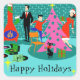 Ces Stickers Retro personnalisables Trimming the Christmas Tree contiennent toutes les traditions de vacances, mais le gâteau aux fruits. Une famille de dessins animés des années 1960 est à la maison dans leur salon moderne du milieu du siècle. Il y a un mur en brique turquoise et turquoise et une cheminée à cône rouge avec un feu rugissant. Papa porte un costume noir et une cravate rouge. Il accroche avec soin des bas verts de Noël sur la cheminée mod. A côté de papa, Junior est perché de façon précaire sur une chaise orange. Ouah ! Doucement, Junior ! Il tend la main pour mettre un ornement sur un arbre de Noël rose, rose, qui est déjà orné d'ornements turquoises et d'une étoile jaune. De l'autre côté de l'arbre, maman tient un cadeau festif enveloppé. Hé, pas de tremblement autorisé ! Maman porte une robe en lingerie rouge vif avec des garnitures blanches. Elle porte aussi un chapeau de Père Noël. Sous l'arbre, il y a un chat noir élégant portant un arc rouge. Au sol, un lecteur de disques vert et noir est entouré d'albums de vinyle colorés. Vous savez juste que la famille chante avec leurs cantiques de Noël préférés pendant qu'ils découvrent les couloirs. Deux étoiles jaunes entourent l'écriture noire amusante. Notre version dit, "Joyeuses fêtes", mais vous êtes libre de les personnaliser comme vous le souhaitez!