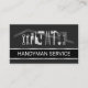 A dark grey cover features an array of silver handyman tools with rooftop building background. Below this is a silver striped layer that contains your business name "HANYMAN SERVICE" which you can change.