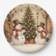 Retro Festive Snowmans and Christmas Tree Paper Plate