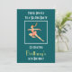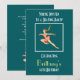 A retro art deco skating party invitation. A retro style vintage image of a female figure skater. Dressed in an elegant and silky coral pink figure skating outfit. With matching coral pink skates and long elegant gloves. Her long brown ponytail swinging up in the air as she jumps high, in a classic figure skater pose. Illustration is set on a dark forest green background. Personalize with all your party details on the front and back.