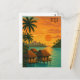 Retro Fiji Tropical Ocean Bungalows Sunset View Postcard