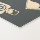 Nostalgic film elements graphics on a dark background, seamless repeat pattern