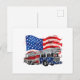 Retro Fire Truck Firefighter Fireman USA Flag 4th Holiday Postcard