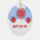 Fun and funky Retro Fireworks Ornament featuring bold and unique firework graphics in red and light blue. This cool ornament would make a lovely keepsake or decoration when customized with the text of your choosing!